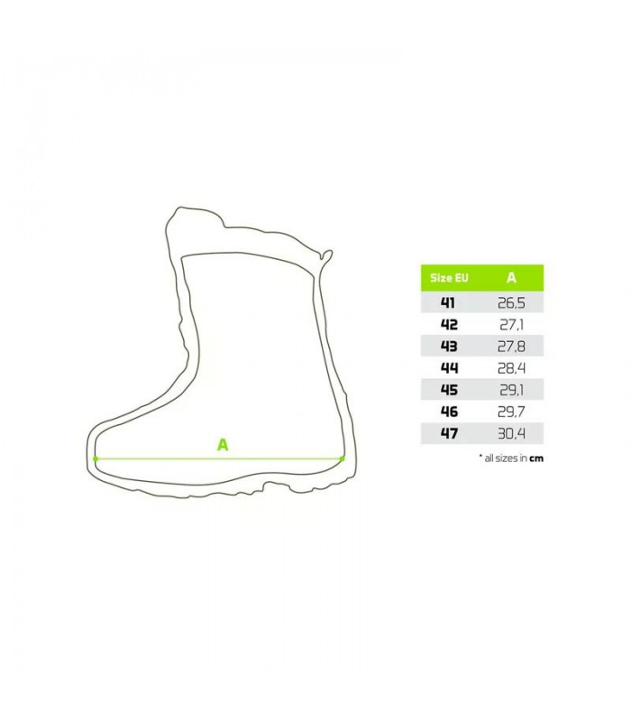 Der obere Teil ist aus einer Kombination von strapazierfähigem Nylongewebe und Kunstleder hergestellt. Diese Materialien widerstehen schlechtem Wetter und lassen sich bei Bedarf leicht imprägnieren. Die Zunge des Schuhs ist in einer Höhe von 17 cm vernäht, was bedeutet, dass Sie sich auch in solchen tiefen Feuchtgebieten für kurze Zeit bewegen können.