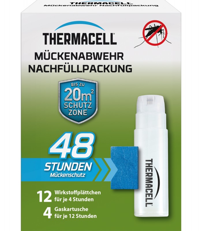 Das Thermacell® Mückenabwehr Nachfüll-Set mit 12 Ersatz-Wirkstoffplättchen und vier Gaskartuschen reicht für 48 Stunden und ist mit allen Thermacell®-Geräten kompatibel. Gaskartusche und Plättchen müssen nicht in Einem verbraucht werden und können flexibel je nach Verbrauch ausgetauscht werden. Für noch mehr mückenfreie Zeit auf Balkon, Terasse, im Garten oder unterwegs. Im Lieferumfang enthalten sind drei Wirkstoffplättchen und eine Gaskartusche für einen Betrieb der Thermacell Produkte von 48 Stunden.
