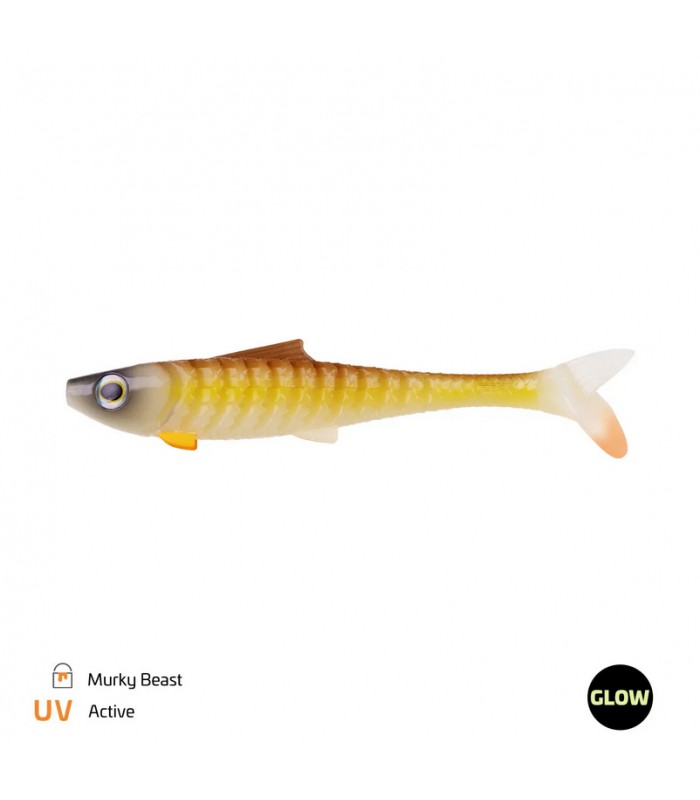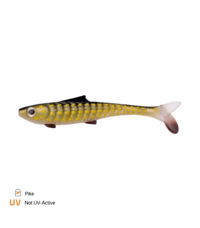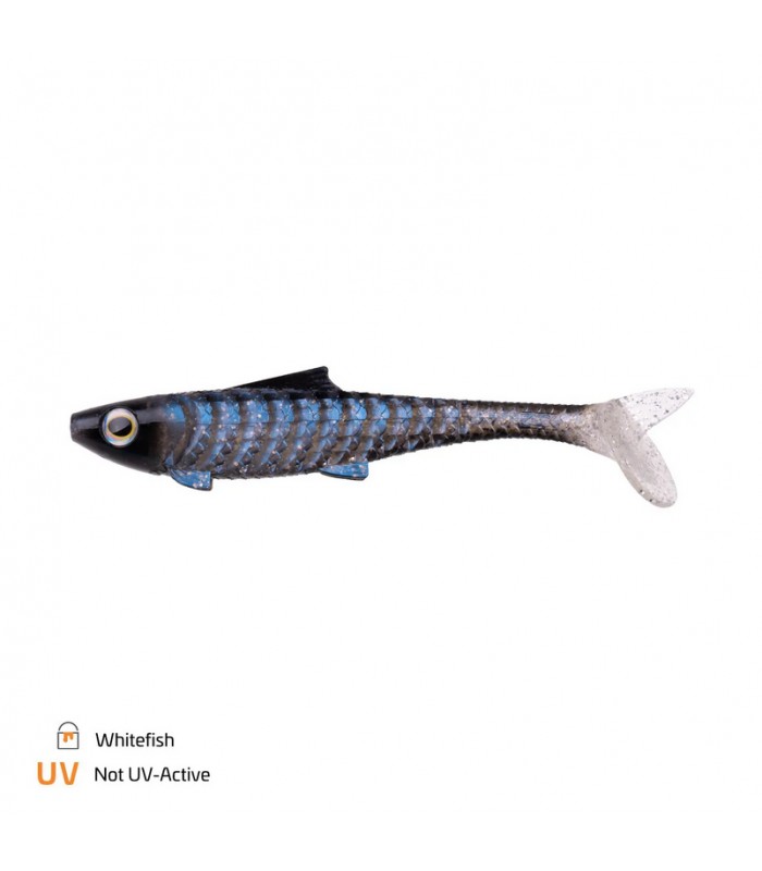 Schräg gestellte, tief ausgeschnittene Rippen erlauben eine verbesserte Aerodynamik, sowie eine spürbare Gewichtsreduzierung. Außerdem bleibt die Beweglichkeit erhalten und der Köder faltet sich auch leicht im Räubermaul ein.